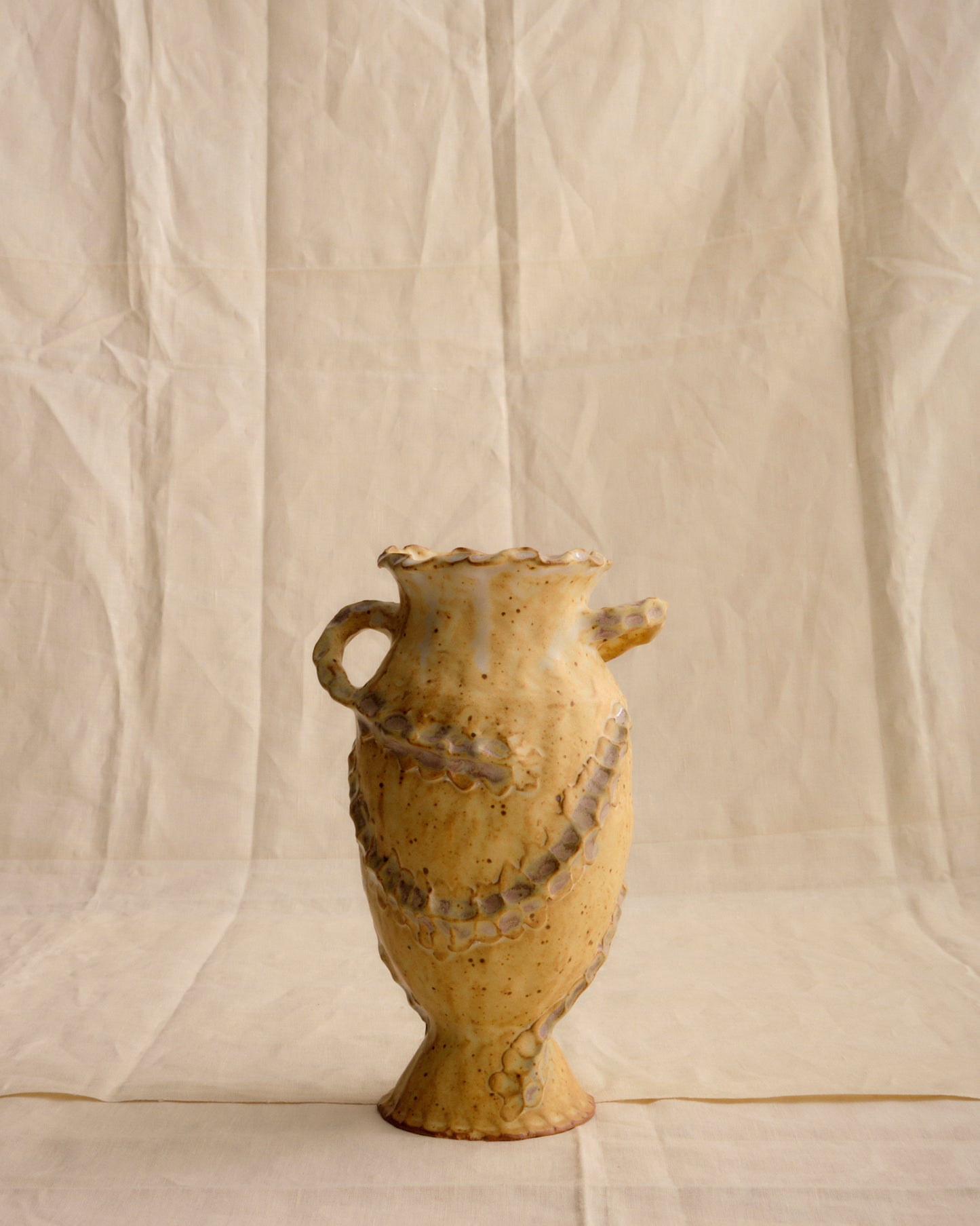 Handmade gas fired vessel with incredible texture by Philadelphia based artist Wonky Ware. Watertight. Due to the handmade nature, slight variations will occur.
